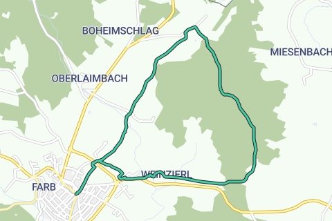 Simbol: Cercle verd ple (normalment sobre un fons groc, de vegades només un adhesiu), amb una fletxa groga a dins que indica la direcció) i el text "MIESENWALD-RUNDE" en forma circular.