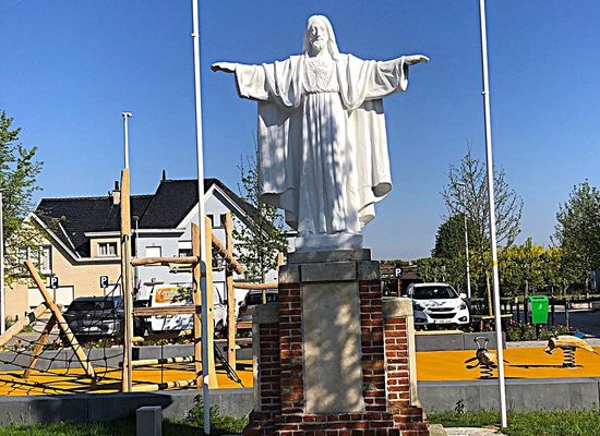 A la Plaça del Sagrat Cor de Woubrechtegem hi ha una estàtua de Crist Rei.