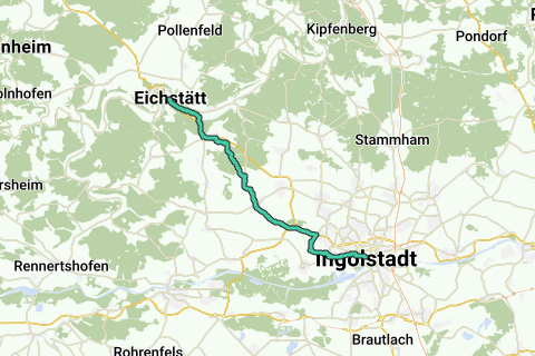 Descobreix el camí en bicicleta Eichstätt - Ingolstadt, una emocionant recorregut de 28,9 quilòmetres que et porta a través del pintoresc paisatge del comtat d'Eichstätt. Amb una dificultat mitjana i 221 metres de desnivell, aquesta ruta és ideal per a ciclistes que busquen una mica d'activitat. El camí ben senyalitzat i completament asfaltat promet una experiència agradable per a conduir. Pel camí, pots explorar la encantadora ciutat d'Eichstätt i gaudir de la bellesa dels voltants. Prepara't per a una excursió amb bicicleta inoblidable!