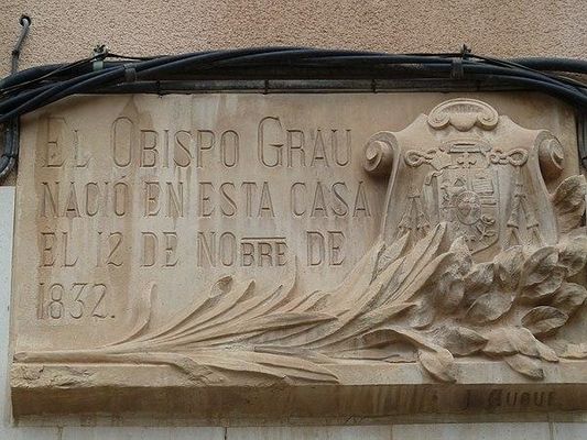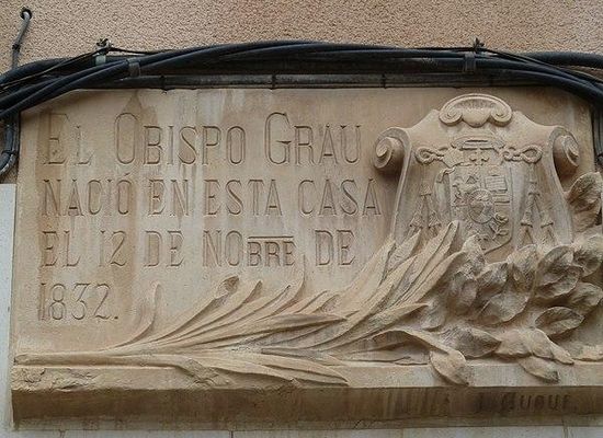 És un edifici cantoner que consta de planta baixa, tres pisos i terrat. Dues portes d'accés donen a la planta baixa, la més petita incorpora damunt de la llinda, una placa ornada amb garlanda i fulles, i l'escut del Bisbe Grau, i la inscripció: "El obispo Grau nació en esta casa el 12 de noviembre de 1832". L'altra porta és d'arc carpanell, amb muntants de pedra picada i un petit medalló en relleu damunt de la llinda. Presenta obertures balconeres amb barana de ferro i altres obertures de diferent mida. Una cornisa volada amb dentellons corona l'edifici. És evident l'embigat de fusta. Les obertures porten persianes enrotllades.