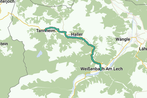 I de første par hundrede meter efter afkørslen "Alter Gaichtpass - Tannheimer Tal" krydser man først Weißenbach am Lech, før man følger cykelvejskiltene mod Tannheimer Tal før broen over Weißenbach. Efter en halv kilometer skifter man side af åen og når den gamle Gaichtpasvej. Man følger grusvejen på en højderyg over Weißenbachklamm, indtil man når Tannheimer Tal vej (B199). Denne krydses, og efter en kort skubbestrækning når man landsbyen Gaicht (ca. 1 time fra Weißenbach), som allerede ligger ved dalbunden af Tannheimer Tal. Nu cykler man gennem skove og enge langs Tannheimer Tal cykelrute indtil vejen og underkører denne cirka 100 meter mod nord til den anden side af dalen. Her holder man sig altid på den velmærkede cykelrute mod Tannheim. Haldensee passeres ved sin sydlige bred, og videre går det gennem byen Haldensee og derefter syd for Grän. Nu er der kun 3 kilometer tilbage gennem enge og marker til Tannheim (altid på cykelruten). Lidt før byen krydser man igen vejen, før man på godt 200 meter når centrum ved kirken (ca. 1 time 15 minutter fra Gaicht).
