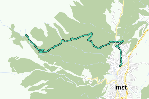Udgående fra kirken i Imster Oberstadt går turen mod nord. Turen fører op ad den asfalterede Lehngasse mod Hahntennjoch. Ved parkeringspladsen ved Rastbühel efter kvægboksen skifter du til skovvejen til venstre. Denne vej følger ruten 619 et kort stykke gennem tæt skovområde. Efter næsten 800 meter drej til højre og cykl nu lidt stejlere opad mod Latschenhütte. Stien snoer sig nu konstant opad, den sidste del parallelt med Imster skiområde, indtil den ubarmhjertige Obermarkter Alm og den lille almbesøgspark. Få meter derover, på cirka 1.630 meters højde, ligger den betjente Latschenhütte.