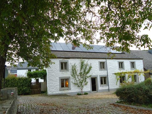 Slutningen på gåturen midt i landsbyen Wéris på Place de la Pierre bag kirken.