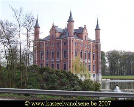 Slottet i Olsene ligger langs vejen Kortrijk-Gent (N43) i Olsene - Zulte. Det blev bygget i 1854 i flamsk nyrenæssancestil og er omringet af en smuk nyanlagt park. Slottet er privat ejet og ikke tilgængeligt for offentligheden, men det er værd at stoppe op ved. Piers de Raveschoot: Slottet i Olsene og dets beboere, familien Piers de Raveschoot, har givet farve til landsbylivet og den lokale politik. I mere end hundrede år var en Piers de Raveschoot borgmester. Den sidste efterkommer, der bar borgmesterbåndet, var Stanislas Piers de Raveschoot. Hans datter Solange var den sidste direkte efterkommer, der boede på slottet. Den første sten til det nuværende slot blev lagt den 18. september 1854 af yngre herre og fru Polydore Piers-Surmont de Volsberghe. Bygningen selv blev opført på fundamenterne af den gamle borg, Hof Ter Wallen. Ved bygningen blev jorden holdt tør ved hjælp af stablede æselhuder, som tusindvis af pæle hvilede på, der støttede slottet. Byggematerialerne blev transporteret med små vogn og skubbevogne. Fra skibet ved loskajen på Leie til byggepladsen var der en kæde af mere end 200 mand. Inden for en periode på fem år blev slottet færdiggjort, hvilket betød en rekord på den tid. I haven langs den Store Steenvej ligger der en stor bakke, også kaldet en blæseklit. Dette sted skulle desuden også være det højeste punkt i Olsene. Under ligger en isgrotte, hvor isen angiveligt forblev på temperaturen i flere måneder. I den dybe, runde beholder blev flere lag lavet. Disse bestod af et lag halm, hvorefter der blev drysset is med groft salt. Sådan blev der lavet flere lag, indtil beholderen var fyldt. Fra den øverste del af beholderen var der en stor afrundet plads tilbage opad. Dette rum fungerede som et køleskab til opbevaring af forskellige fødevarer. Der blev også forberedt isblokke til landsbyboerne og hospitaler. Disse blev derefter anvendt som smertestillende midler ved bl.a. mavesygdomme ('ildet'), forstuvninger af arme og ben, høj feber osv. Grotten, også kaldet "Olsene Rotse", finder du på hjørnet af Machelenstraat og Kasteelstraat i Olsene. Mellem slottet og grotten var der engang en smuk allé, der var cirka 830 meter lang (et stykke forbi klippen). Ifølge legenden løber der en underjordisk gang under alléen mellem grotten og slottet i Olsene. Du kan se begyndelsen af gangen i grotten, som skulle være kollapset!? Som vanligt i den tid var der også to kanoner ved slottet i Olsene ved adgangsbroen. På kanonerne er våbenskjoldene fra familierne Piers og familien Surmont de Volsberghe anbragt. Over tid befandt kanonerne sig i en bekymrende tilstand. Alle reparationer på dem blev udført af eleverne fra VTI i Oostende. Den 23. juni 2006 kom kanonerne fra Slottet i Olsene hjem igen.