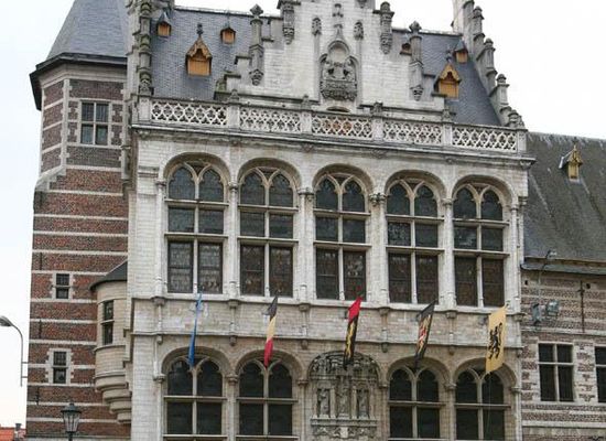 Første gotiske rådhus fra 1359 indbygget mellem brødhuset og Sint-Truiden-porten.