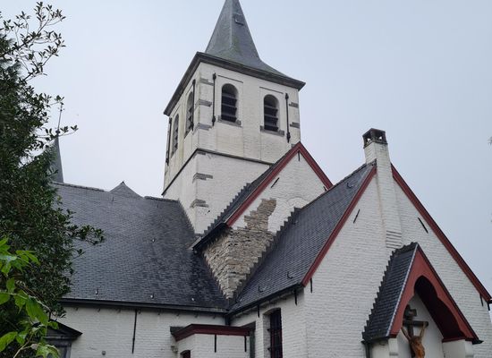 Fra et biskoppeligt dokument fremgår det, at der allerede stod en kirke i Sint-Martens-Latem før 1121. Den romanske oprindelige form af bygningen antyder, at den gamle kirke allerede var opført i sten. Da kirken ligger ved Leie-flodbredden, kunne kalkstenen fra Tournai nemt transporteres via Schelde og Leie. I 1771 blev kirken grundigt ombygget. På kirkegården ligger gravene for kunstmaleren Albijn Van den Abeele (1835-1918) og billedhuggeren baron George Minne (1866-1941). Gennem glasvinduerne og malerierne er der også moderne kunst til stede i kirken.