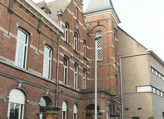 Normaskole, efter design fra 1903 af arkitekt J. De Vroey, grundlagt i 1904 på grunde fra begijnhof, ansøgning om udvidelses- og ændringsarbejder efter design af samme arkitekt i 1914.