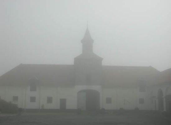 Doorniksesteenweg nummer 388. Historisk gård kaldet "Hof van Ename" eller "Hof van Bossuit", beliggende på en sydvendt bakkekam nær Skelde og Moergracht. Bakkekammen, hvor gården opstod, var allerede beboet i romertiden som centrum for en villa. I første halvdel af det 12. århundrede opstod de vigtige ejendomme fra klosteret Ename på kommunen's område. En af dem var Hof van Ename, som udgjorde centrum for en villa. Den største del af den (2/3 af et allodium) lå i Bossuit og Outrijve og blev solgt af Diederik van Chièvres cirka 1128 til klosteret. Salget fandt sted i nærværelse af greven af Flandern, Diederik van den Elzas, som også var værge for klosteret og overvågede væksten af klosterets ejendom og intervenere i tvister. Årsagen til salget er meget uklar, men kan sandsynligvis placeres i en periode med generel fattigdom blandt adelen. Kernen, dannet mellem 1128 og 1141, blev senere udvidet med ejendom beliggende i Sint-Denijs og Moen. Navnet Ename er også forbundet med et rettersted, abbeden af klosteret besad retten, ved alvorlige overtrædelser gjaldt grevens jurisdiktion. Ledelsen af villaen blev udøvet af en meier, første gang nævnt i et arkivdokument fra 1150. Gården selv nævnes tidligt i forskellige tekster, blandt andet i 1181 (som en del af allodium i Bossuit), yderligere omtaler i 1236 og 1335. Fra det 13. århundrede (1267) blev bygningerne udlejet. I det 15. århundrede udøver lejer også embedet som baljuv, sammen med sine skippere fører han det administrative og juridiske arbejde og er han formand for den lokale cijnshof. I 1477 brændte gården som følge af krigene i området. Et år senere er renoveringsarbejderne på gården stadig i gang. Det strategiske betydning af Skeldedalen som militær gennemgangssted fremgår af, at gården i midten af det 17. århundrede ofte blev brugt som opholdssted for soldater. I denne periode, ifølge klosterets regnskaber, var der meget arbejde på gårdbygningerne, herunder ombygning af port (1634), opførelse af en ny lade (1662) og bygning af fårestalde med brug af blå sten (1664). I 1662 bestod gården af en hestestald, et bolighus, en bageovn og et vognhus (mod nord), en imponerende lade (mod vest) og et væveri, svin-, kvæg- og fårestalde (mod øst). Centralt i gården var der et duerhus. I 1690 nævnes gården som en af de vigtigste i området. Efter den franske revolution, som satte en stopper for klosterets fortsatte eksistens, blev gården solgt som national ejendom. I tildelingsrapporten beskrives den som "une belle ferme nouvellement bâtie en briques, ..., situé sur le territoire de la commune de Bossut, provenante de l'abbeye d'Eenaeme". Denne tekst viser, at gården kort før 1792 blev helt genopbygget på de gamle fundamenter, og dette under ledelse af Dammien De Staercke. Regnskaber fra klosteret nævner datoen 1792-1793. Gården er afbildet på en ikke-dateret plan med klosterets ejendomme i Bossuit. Planen er en del af den såkaldte "Topografiske historiske atlas", opbevaret i Rijksarchief i Ronse. Gården er betegnet som "'t hof der Abdije van Eename tot Bossuyt". Også betegnet som "Ferme d'Eenaeme" på Ferrrarisk kort (1770-1778), kortet viser en gård med lukket stilling, adgangen til allée er også allerede angivet. Den primitive plan fra matriklen (1827), Atlas der Buurtwegen (ca. 1843) og P.C. Popp kort (cirka 1850) viser portbygningen med tilstødende staldfløje, bolighus, laden og det tidligere vognhus. Undersøgelse af arkivet fra matriklen viser, at der var ombygningsarbejder i 1865 og 1885, formodentlig blev ast opbygget i denne periode. I 1946 blev den anden gårdindgang overdækket, det blev også bygget en lille bygning mod øst. Udvidelse af gården med nye lagerbygninger i 1980, 1988, 1990 og 1997. Nuværende udseende af gården, undtagen cichorei-ast opnået i 1792-1793. Ikke ommuret gård med lukket stilling bestående af hvide teglsten under tag af sadel- eller skjoldtag og grupperet omkring en hård gård, bevarede belægningssten. Slående er den arkitektoniske ensartethed af bygningerne. Bevarede brostenvej beliggende mellem Doorniksevej og gårdbygningerne, kantet af plataner, giver adgang til gården. Southern gåde adgang via monumental tårnport, flankeret af staldfløje. Bolighus mod øst, dobbelt tvær-lade mod nord, cichorei-ast og tidligere åben vognhus mod vest. Anden belagt gårdindgang ligeledes mod vest. Uden for gården nyttangsbygning af to etager og ovenbo mod øst, forfalden kapel mod nord og indhegnet gødningsplads mod sydøst. Bolighus. Imponerende lav volumen af fjorten fag, underkældret dobbelthus af hvide teglsten med trinfrise. Tegltag med wolfseind gennembrudt af tre kviste og et lastevindue, kranset af et klokketårn. Buede vinduer med fornyet snedkerarbejde, bevarede granit vindueskarmene. Retangulær døråbning med for området typisk tegl-omramming (hvidmalet), niche med helgenbillede. Trappe (ikke original) af fire granittrapper. Bagvæg udformet på analog måde. Sørlige sidevæg med fletninger, sandsynligvis sidevæggen af en ældre konstruktion, der blev integreret. Tilpasset interiør, ifølge litteraturen med bevarede kældre med tolv vogn og bevarede tagkonstruktion. Lille volumen mod øst fra 1946, tilsluttet bolighuset. Portgang. Billeddefinerende volumen af rød teglsten (delvist hvidmalet) med indbygget duerhus, markeret af to rækker med små rektangulære flyvehuller i en granitramme. Helt kranset af skjoldtag gennembrudt af en med træ skiferbelagt tårn med væder. Våbenskjold af klosteret Ename af hvid natursten over gårdindgang. For portbygningen åben bygning under tag af saddeltag. Staldfløje. Lave volumener af hvide teglsten på opdelt plint rytmisk af lisenes og forskønnet af trinfrise. Tegltage gennembrudt af lastevinduer. Rektangulære vægåbninger, udstyret med tyveriforhindringer i bagvæggen. I stalden, på begge sider bevarede granit-kraver, også bevaret murstensti. Helt dækket af teglsten i kuppe