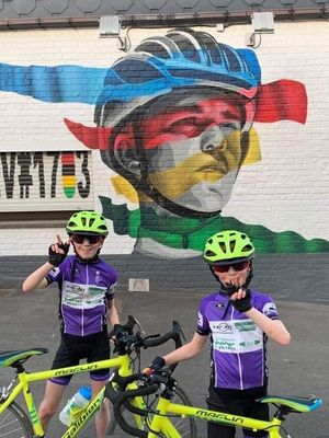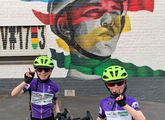 Mange små og store støtter kommer her for at ære det store vægmaleri af Remco Evenepoel.