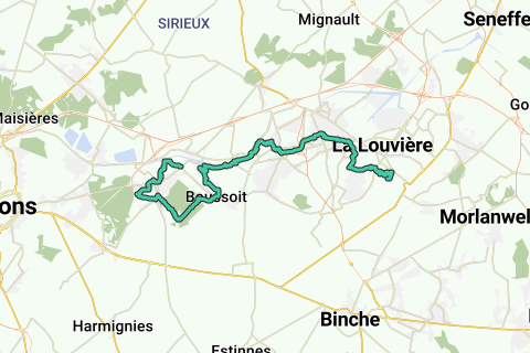 Vi starter fra stationen La Louvière - Syd, som har en direkte forbindelse til Havré - i modsætning til stationen i La Louvière - Centrum. Når vi kommer ud fra stationen i La Louvière - Syd, tager vi den gamle kulsite ved Sart-Longchamps 3 for derefter at påbegynde opstigningen til den stejlere halde Sart-Longchamps 2. Efter disse halder og kvarterer med arbejderboliger når vi til 'Eglise du Voeu à Saint-Antoine de Padoue'. En kirke dedikeret til Skt. Antonius af Padua, der bringer os til næste arbejderkvarter - Cité Du Nouveau Monde.