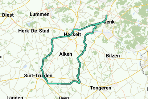 520hm. Fra Middenkruis 24, 3600, Genk Boxbergheide til Diepenbeek- Kortessem- Kerniel- BORGLOON- Voort Romersk Kassei- Helshoven- Brustem- SINT TRUIDEN- Melveren- Nieuwerkerken- Kozen- STEVOORT- Spalbeek- Stokrooie- Zonhoven til Middenkruis 16, 3600 Genk Boxbergheide.