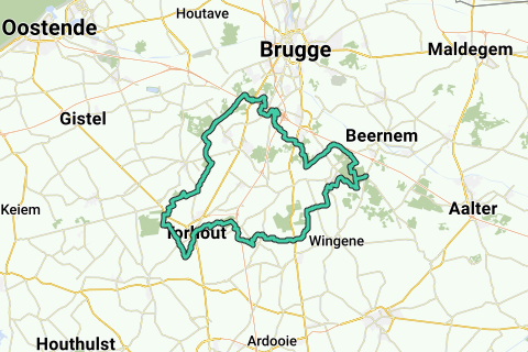 Begynd ved udstillingen i marken Bulskamp. Vi kører gennem skovene ved Hertsberge langs Munkebos og Lakebos gennem Groenhovebos til centrum af Torhout.