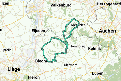 Start/slut: hjørnet Marktstraat/Rijksweg Gulpen. Stejle stigninger: Schweiberg Mechelen. Varnstraat Teuven (B). Chemin de l'Andelaine Bombaye (B). Côte de Mortier Mortier (B). Privôt (delvist) Charneux (B). Wadeleux Val-Dieu (B). Bushaye Aubel (B). Hagelstein Aubel (B). Højdemetre: 771.
