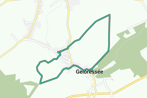 Denne vandretur gennem landskabet starter ved kirken i Gelbressée, et sted nordost for Namur, der bærer samme navn som den bæk, der løber igennem. Ved starten skal du lægge mærke til de smukke lindetræer omkring kirken. Dette træ findes ofte i vores egne områder. Det kan vokse op til 40 m højt og nå den respektable alder af 100 år. Det hvide og bløde træ bruges til at lave møbler, klaviaturer, blyanter. Man laver også papirpaste af det. Du starter langs en skovkant og går derefter gennem marker. Du befinder dig på Haspengouws plateau, et typisk landbrugsområde, hvor imponerende gårde ligger mellem korn- og sukkerroemarker. Du vil følge to vandløb: det andet er den tidligere nævnte Gelbressée. Ruten går forbi Ferme de la Maquelette og ned ad en buget vej mellem landbrugsjordene til landsbyen for at vende tilbage til starten. I denne region med marker og enge lever viben. Ryglinjen og vingerne på viben er dækket af metalgrønne fjer. Dens hvide bryst går over i en sort hals, og halen ender også med en sort kant. Viben har en karakteristisk lang kam, der peger bagud, og dens navn er en lyd efterligning af dens genkendelige kald. Rute fra brochuren "Balades nature en Namurois". Udgiver: Département Environnement et Propreté de la Ville de Namur.