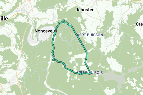 Turen starter fra parkeringspladsen ved Ninglinspo-dalen i retning af skoven mod Chaudière. Her går den op til grænsestolpen ved Porallée og derefter videre til den lille landsby Ville-au-Bois (510 m.) for derefter at gå ned til dalen og landsbyen Quarreux for at finde Amblève ved Fonds de Quarreux. Den går under jernbanebroen og fortsætter dernæst parallelt med Amblève. Den store vej krydses så, og man returnerer til parkeringspladsen. Skovprocent: 81%.