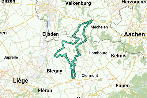Start/slut: hjørnet Marktstraat/Rijksweg Gulpen. Bestigninger: følger. Højemeter: 855