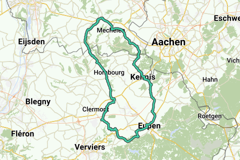 Start/slut: hjørnet af Marktstraat/Rijksweg Gulpen. Bestigninger: følger. Højde meter: 720.