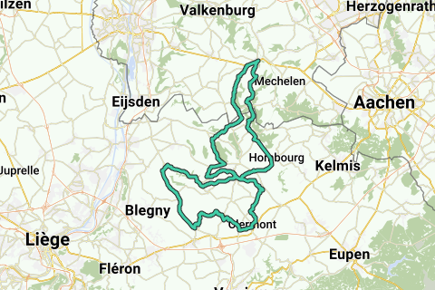 Start/slut: hjørnet af Marktstraat/Rijksweg Gulpen. Stigninger: følger. Højde-meter: 981.