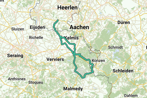 Start/slut: hjørne Marktstraat/Rijksweg Gulpen. Stigninger: følger. Højdemeter: 1.318.
