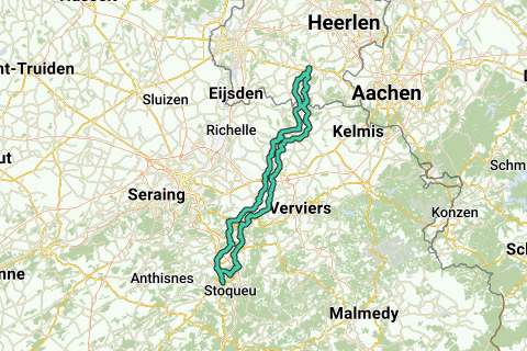 Start/slut: hjørnet af Marktstraat/Rijksweg Gulpen. Opstigninger: følger. Højde meter: 1.711.
