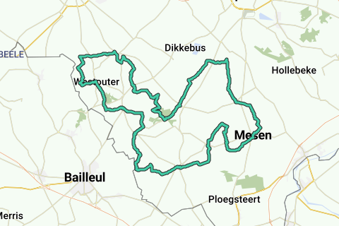 Vejledt cykelrute fra Heuvelland, Mesen (1 retning) kan findes på hjemmesiden www.visitwestvlaanderen.be, men her nu med højdeprofilen!