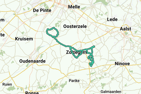 Via Velzeke når du efter 10,9 km banen for BK2022-tidskørsler. Den nævnte bane er 11,6 km. Derefter cykler du til Hoogstraat i Herzele, hvor du befinder dig på banen for BK2023-tidskørsler (km35). Den sidstnævnte bane er 20,8 km. Til sidst cykler du fra km56 tilbage til dit udgangspunkt...