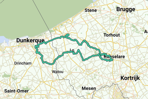 Du starter i cykelhjertet af Flandern: Roeselare, hjemsted for mestre. Snart lader du den urbane del bag dig via rolige veje langs Ruiter og Most.