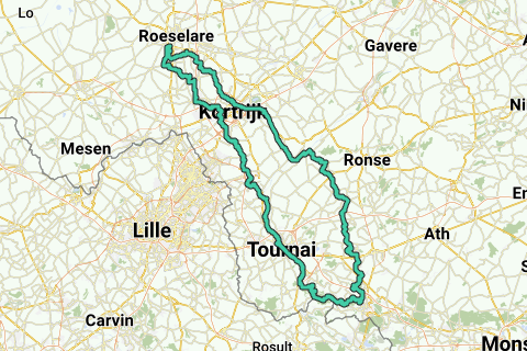 Denne rute er en ægte udholdenhedstest for dem, der elsker lange, glidende ture. Ingen stejle bakker, men kilometer, rytme og mental styrke. Fra Leie over Schelde og tilbage, gennem Flandern og Hainaut, langs vand, skove og landsbyer.