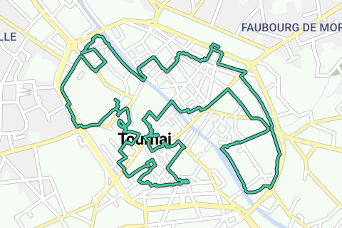 Fra den storslåede Tournai station spadserer vi gennem Parc Crombez til Parc Van Cutsem, hvor et imponerende Monument aux morts viser scener fra krigene. I parc Marvis og parc St-Jean ser vi tydeligt resterne af den anden bymur fra det 13. og 14. århundrede.