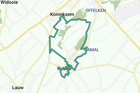 Van Kerkstraat 3, 3700 Koninksem, Belgien, rolig tur på bilfrie veje og markveje mod Rutten, efter passage gennem landsbyen Rutten går vi til Hamal og derefter mod Offeken tilbage til Koninksem.