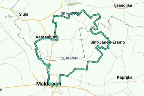 Der er også en forkortet version af denne rute: grænsen over til Meetjesland. Denne rute er 42 km.