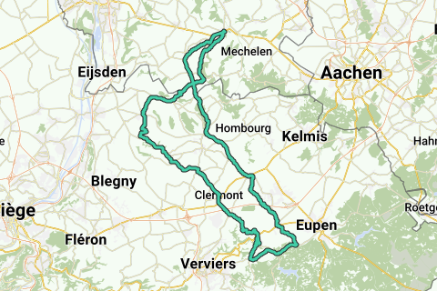 Start/slut: hjørnet af Marktstraat/Rijksweg Gulpen. stigninger: følger. Højdemeter: 887.