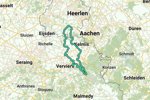 Start/slut: hjørnet Marktstraat/Rijksweg Gulpen. Stigninger: følger. Højdemeter: 1262.