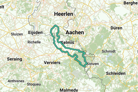 Start/mål: hjørnet af Marktstraat/Rijksweg Gulpen. Stigninger: følger. Højdemeter: 1139.