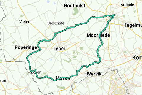 Rute: Roeselare, Westrozebeke, Poelkapelle, Langemark, Boezinge, Elverdinge, Brandhoek, Westouter, Vidaigne, Loker, Dranouter, Mesen, Houtem, Geluwe, Molenhoek, Slypskapelle, Moorslede, Roeselare