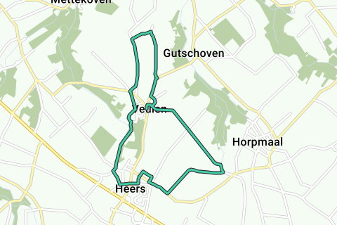 Fra Nieuwe Steenweg 128, 3870 Veulen, Belgien; afgang med en runde i veulendorp mod Gutshoven. Derefter går vi til Heers bagom slottet ved søerne, efter et par gader i Heers landsby drejer vi mod Horpmaal for at tage tilbage til Veulen af parcelveje.