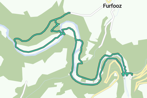 Under Lesse fortsætter vi nu GR'en i den anden retning. Fra Plage de Chaleux vender vi tilbage til parkeringspladsen for at komme til den anden side af Lesse via en jernbanebro. Vi ankommer nu til Furfooz Naturreservat, lige lidt længere væk den betalende Geologiske og arkæologiske park Furfooz.