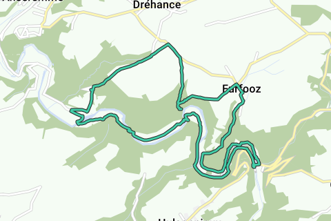 Vi følger GR126 langs bredden af Lesse, som vi krydser to gange via en jernbanebro. Ved Plage de Chaleux har vi udsigt til klipperne i Cirque de Chaleux, hvor vi stod. Vi fortsætter mod Chapelle-Saint-Nicolas indtil jernbanebroen, hvor vi forlader GR og fortsætter langs bredden af Lesse til Gendron-Gare.