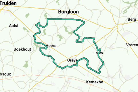 Beskrivelse: Komplet i knudepunktssystemet: Fin runde gennem det bakkede flamske Haspengouw med et afstikker til den walisiske del af Belgien. Det går gennem mark- og frugtavlsland, men landskabet har samtidig mange grønne områder, skove, alléer, bækdale og hækstier. Talrige gamle gårde og også slotte pryder turen, der er forskellige steder at stoppe. Adskillige korte stigninger, der dog ikke kræver store sportspræstationer. Kun én gang går det kort over grus.
