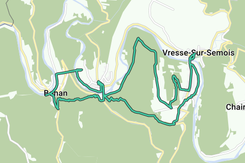 Dette er en længere version af en dagstur fra Vresse/Laforêt til den livlige Bohan. Denne version begynder i Vresse i stedet for Laforêt og vender tilbage forbi Semois-vendingen fra Membre til Laforêt.