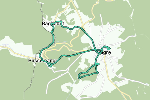 Vi starter i Bagimont. Vi følger rute 50 ( grøn-hvid-grøn ) til Sugny. Der er nogle krigsmindesmærker ved kirken. Vi passerer forbi nogle gamle drikkepladser til Domaine Marial. Guad af Lourdes, den Hellige Trappe, Golgata og helligdommen for Santa Teresa er kun nogle af de interessante steder...