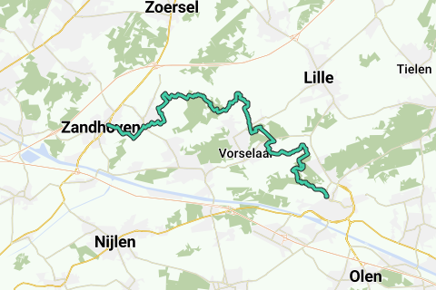 På denne tur går du hele 82% af strækningen på grusveje gennem løv- og nåleskove, passerer et hedelandskab og vandoplandene fra Molenbeek, Aa og Kleine Nete samt naturreservatet Lovenhoek.