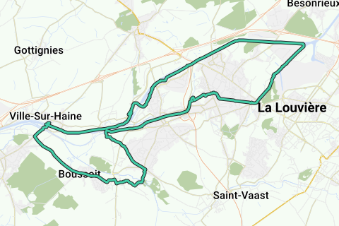 Udgangspunktet er parkeringspladsen ved Hardat pladsen i Thieu. En mindesmærksvogn mindes en af de minekatastrofer, som kulregionen har lidt. Firkanten 15 ligger nederst på RAVEL langs kanalen.