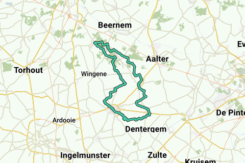 Vi kører gennem centrum af Tielt til Sliderskapelle, for at returnere til vores udgangspunkt via Gulke-brønden og radioen i Sint-Pietersveld med sine mange seværdigheder over Vorsevijvers og Hertsberge.