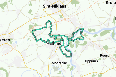 Start i centrum af kommunen Hamme. Går via for det meste grusveje, men godt farbare veje langs den gamle Durme til centrum af Waasmunster.