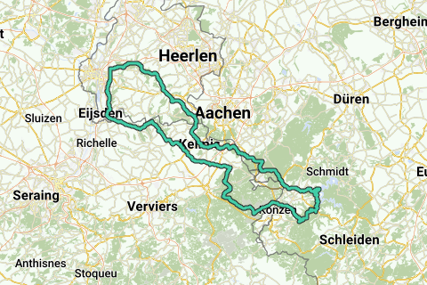 S.M.V. - Planken - Teuven – Hombourg – Montzen – Busch – Lontzen – Walhorn – Belven – Neudorf – Kortenbusch – Schwarzbusch - Wesertalsperre – Entenpfulh – Am Gericht – Eicherscheid – Hammer – Dedenborn – Rauchenauel – Rurberg – Woffelsbach – Steckenborn – Strauch – Rollesbroich – Lammersdorf – Waldsiedlung – Jägerhusvej – Rott – Rotterdell – Schmithof – Sief – Lichtenbusch – Hauset – Hergenrath – Kelmis – Moresnet-Chapelle – Gemmenich – Wolfhaag – Holset – Vijlen – Mechelen – Wittem - Wijlre - Schin op Geul - Valkenburg - Houthem - Berg en Terblijt - Amby - Gronsveld - Mesch - S.G.V. - S.M.V.
