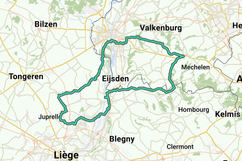 Start/slut: hjørnet af Marktstraat/Rijksweg Gulpen. Stigninger: følger. Højde meter: 000.