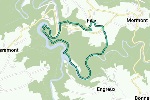 Ruten starter ved dæmningen og begynder hurtigt med en stejl stigning langs smalle stier og trapper, for at falde ned til det punkt, hvor den østlige og vestlige Ourthe mødes. Derfra følger man bredden af den østlige Ourthe. Den sidste kilometer langs denne bred går via en smal sti, hvor man virkelig skal være opmærksom på, hvor man sætter fødderne. Via en stejl stigning kommer man op på en plateau, hvorfra man går ned til landsbyen Filly. Her kan man tage en pause! ;o)