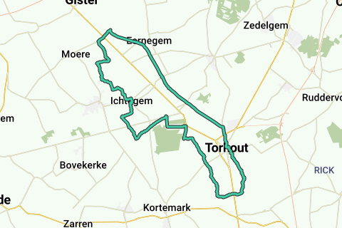 RUTE: 39 km / genvej til 26 km / flad rute / Wijnendaele – Ichtegem – Eernegem – Wijnendaele – Torhout