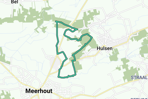 Smuk knudepunktsvandring, der starter ved B&B Het Verloren Schaep i Meerhout. Vi krydser N110 for via en lille omvej at vende tilbage langs Grees og Greesloopstraat til den samme N110, som derefter følges i en kort afstand, inden vi dykker ind i Volsbergen-skovene i Balen. Man forbliver i skovene, indtil man næsten når den Store Nete. Denne krydses via Savelbroen. Den Store Nete følges et øjeblik, hvorefter man går mellem markerne til Lil. Ved Lil tager man til højre for at gå til den smukke enkle St-Elisabethkapel og vandre Brigandstreet. Via Brigandstreet kommer man forbi Hunde Skole De Natte Neuzen i Meerhout. Hvor man igen krydser N110 for at vende tilbage til startpunktet via Volmolenweg.